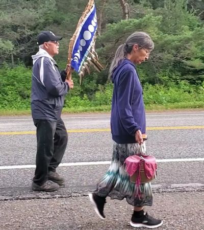 For the Anishinaabe, water is associated with Mother Earth, and it is the responsibility of the grandmothers to lead other women in praying for and protecting the water. Spring became the annual time of year for water walks to begin, as it symbolizes re-growth and renewal of the earth. This work continues through a group called Nibi Emosaawdamajig (Those Who Walk for the Water) led by Shirley Williams and her niece Elizabeth Osawamick. Grandmother Josephine was the Chief Commissioner of the Anishinabek Nation Women’s Water Walk Commission, a member of the Great Lakes Guardian Council.