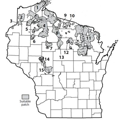 Caribou were likely confined to areas of old growth boreal forest which is now extremely limited in Wisconsin. Moose were more common, especially north of the 44th parallel. Like caribou, moose have more specific habitat needs than elk. Suitable moose habitat would need to include a great deal of young cover, significant spruce and fir forest, and wetlands.